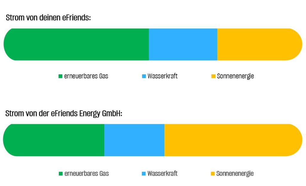 Wenn du keinen Strom aus der Community beziehst, versorgt dich die eFriends Energy GmbH mit Reststrom (100% zertifizierter Ökostrom aus Österreich) zum Preis von 16,8 ct/kWh (inkl. USt.).
